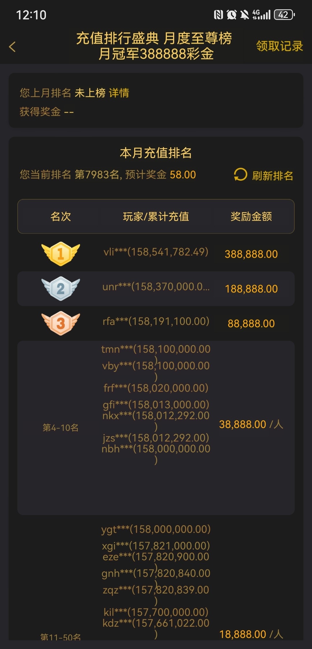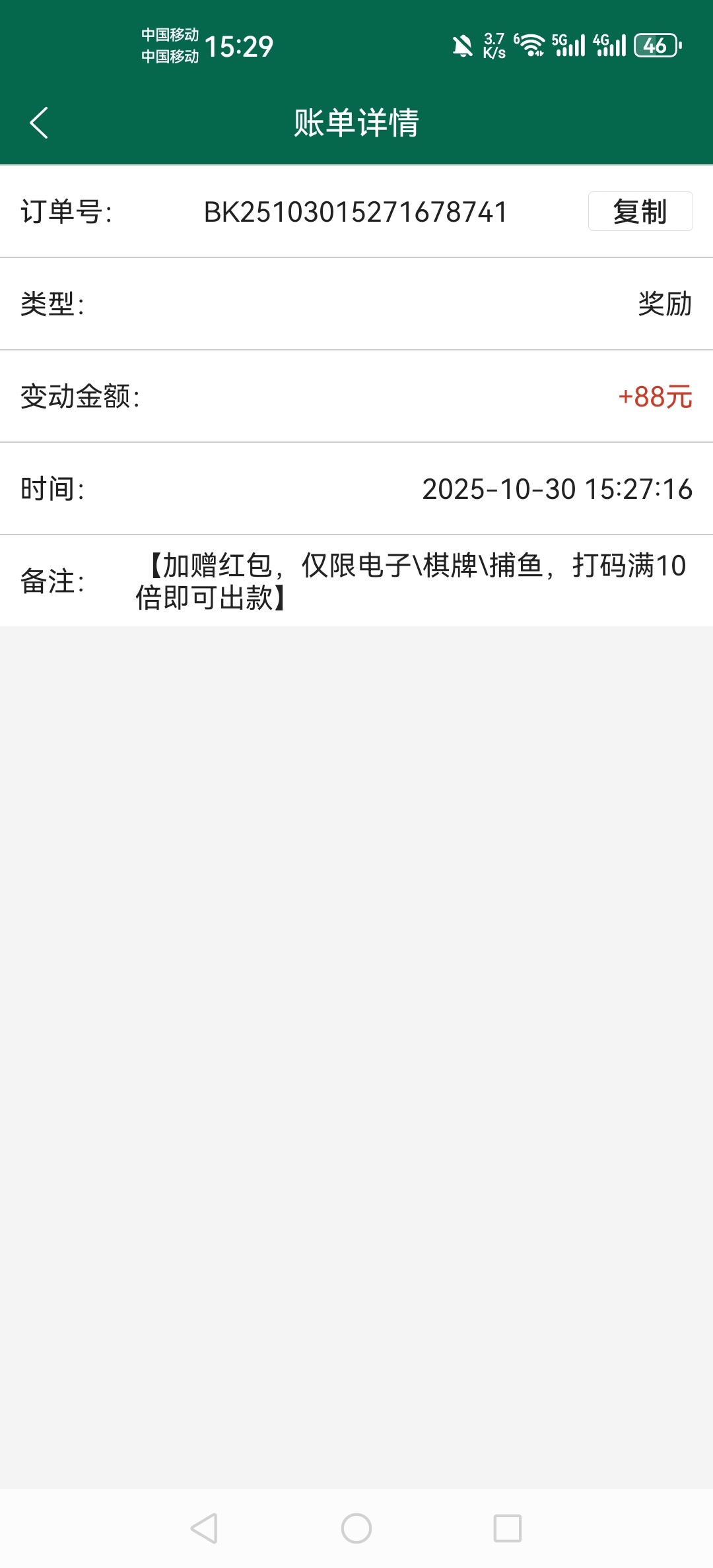 太久没玩,提现要充同等金额,倒下了,充不起了,谁玩?打出来37分,我三,还有月彩金和周彩金没领