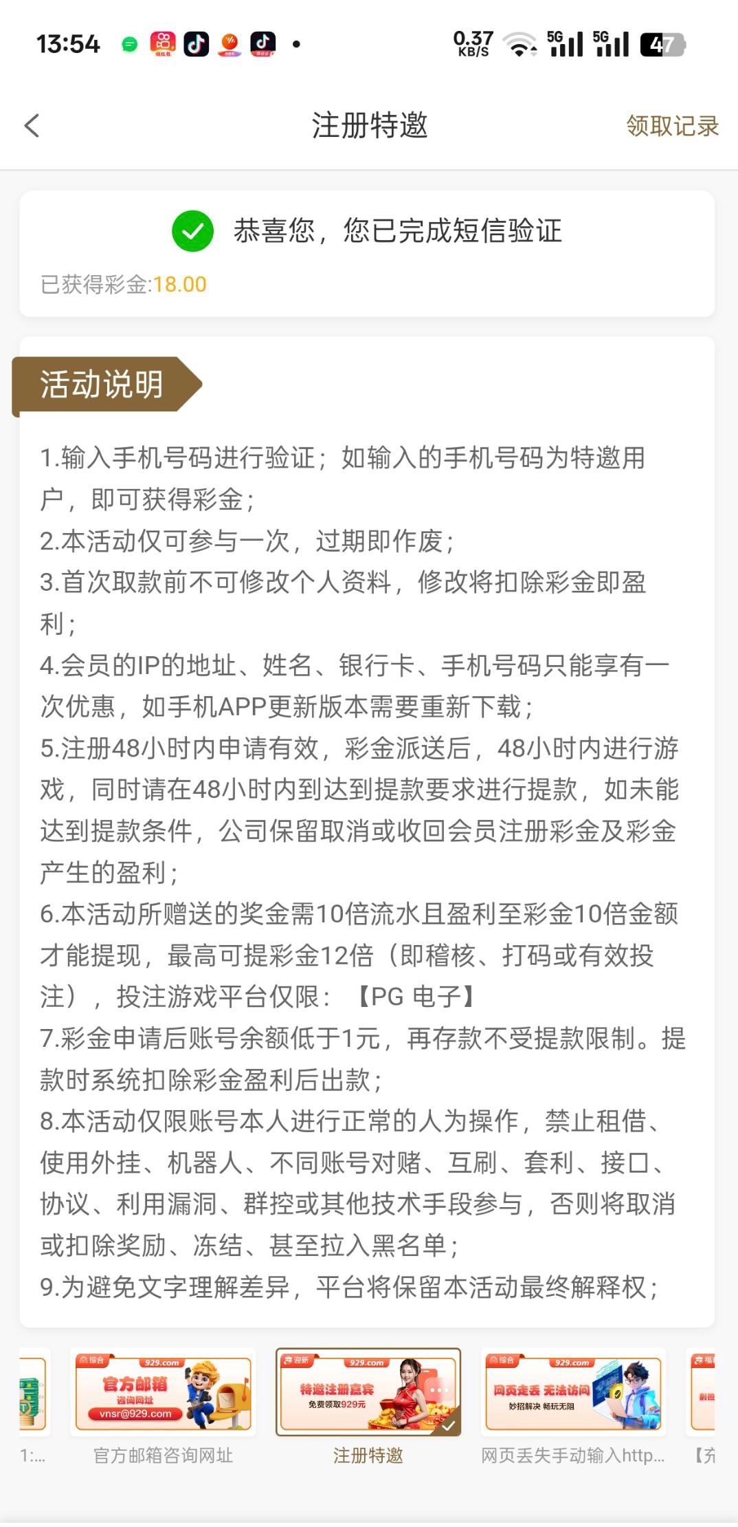 接到电话新平台威尼斯人下载注册送18-929体验金,验证手机短信收到18元.网址929.com