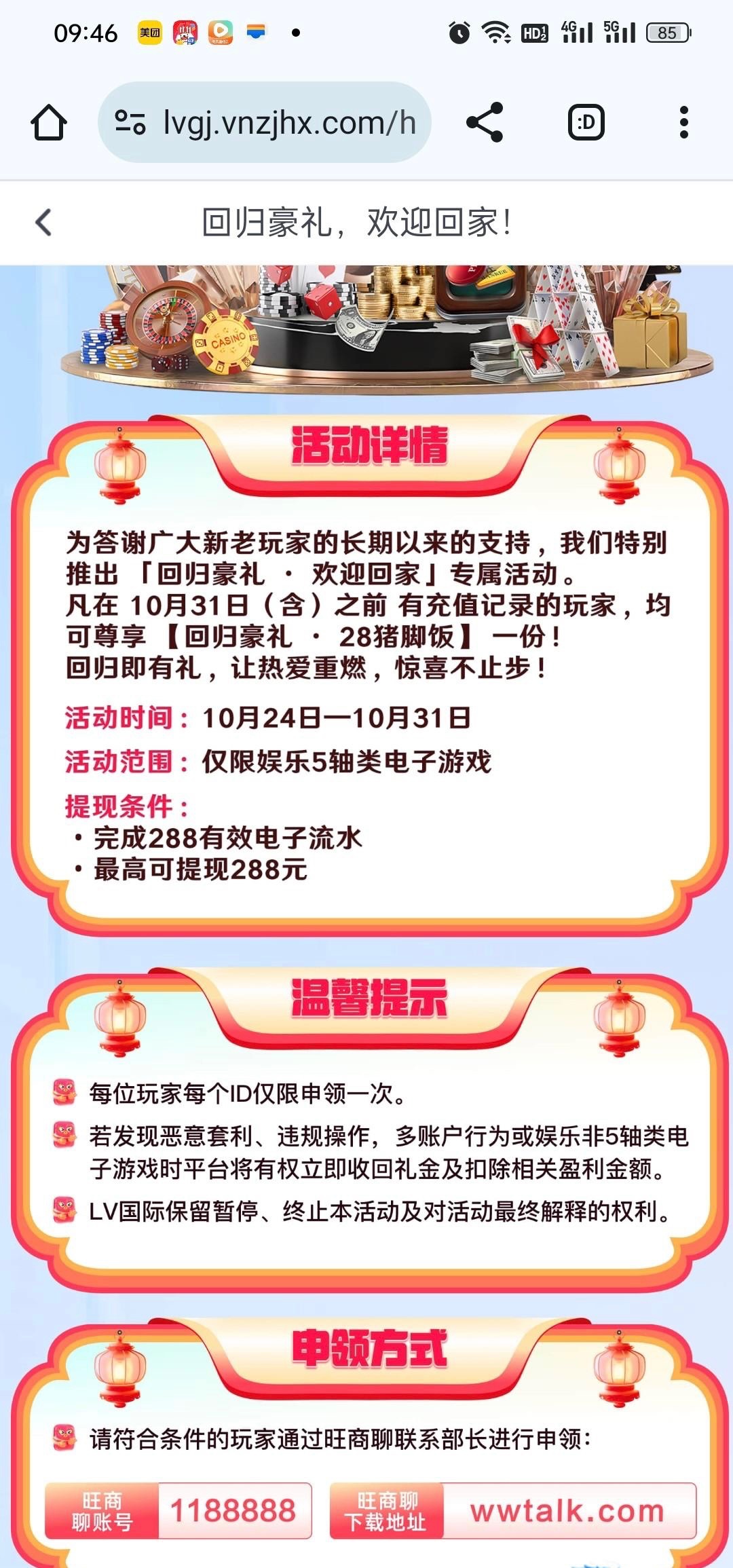 Lv国际 历史存款回归彩金