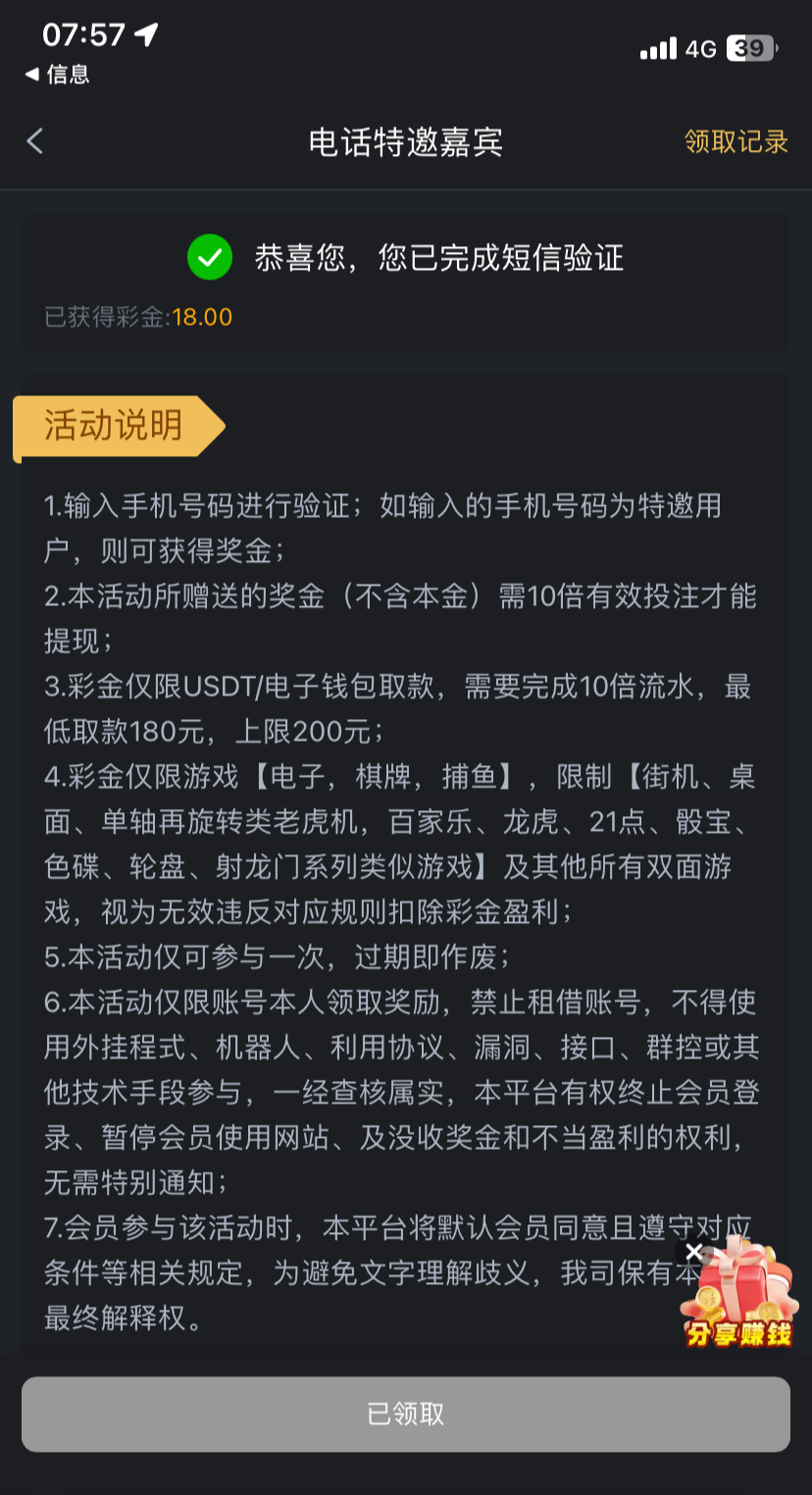 电话彩金18