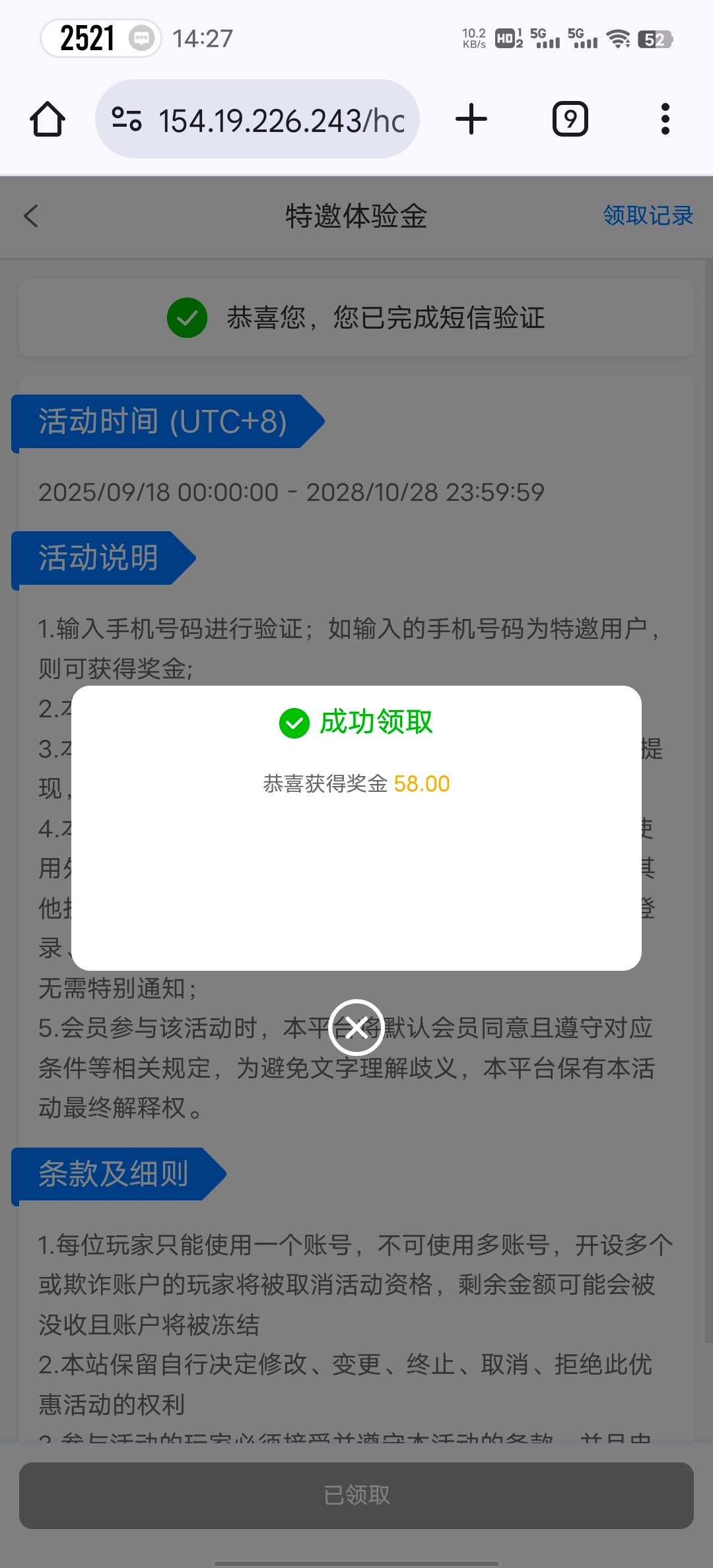 注册优惠里面验证手机号