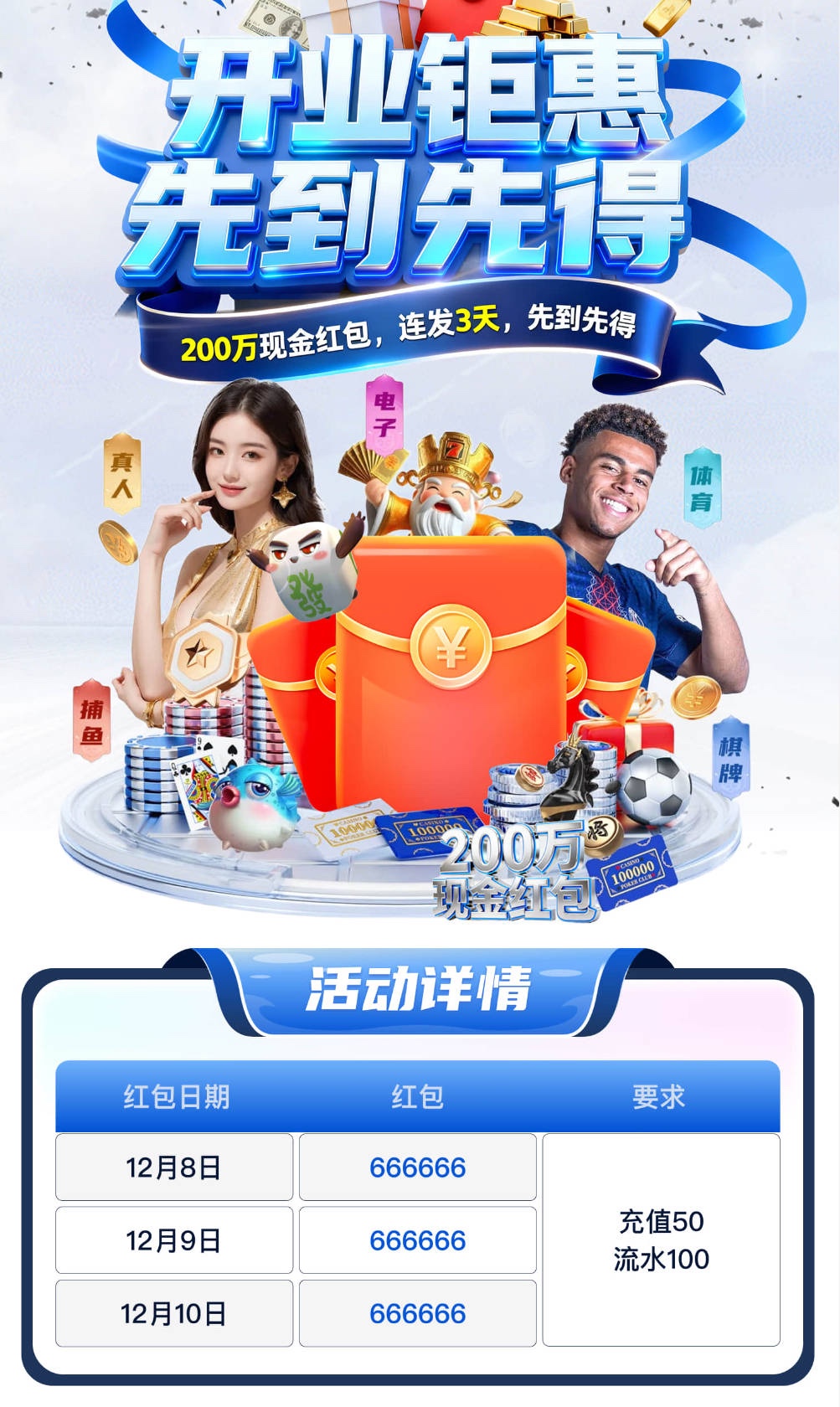 前100个注册的用户自动有58彩金好像领到的反馈下,没领到的也没关系,5号开放注册,先注册绑定好信息,8号才正式营业的,开业会发三天红包,论坛也会发福利的,到时不是分享网的下级参加不了