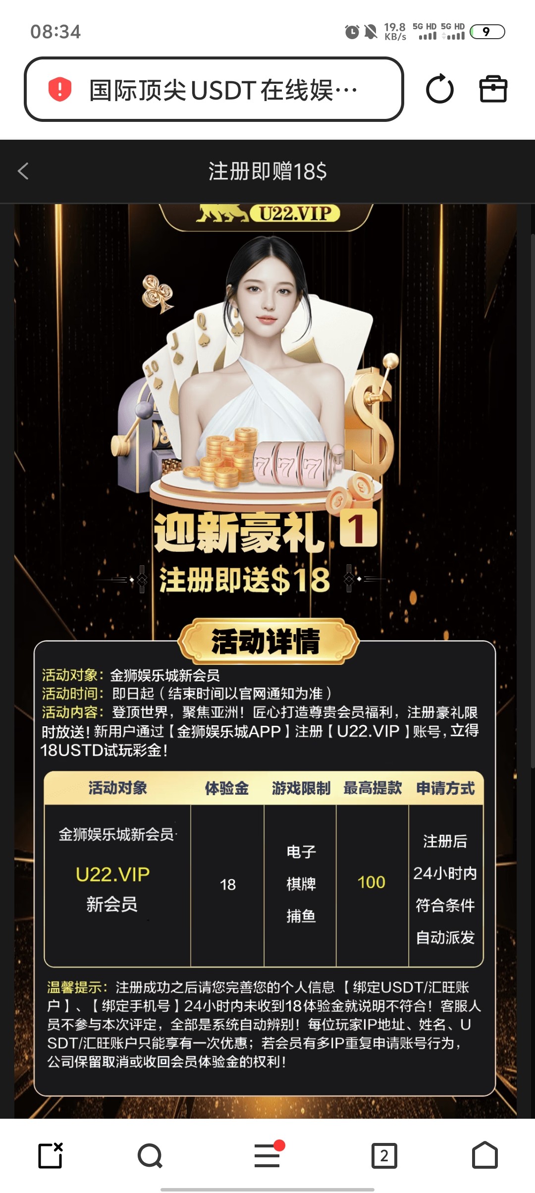 【金狮u22】—✅—短信注册送18u