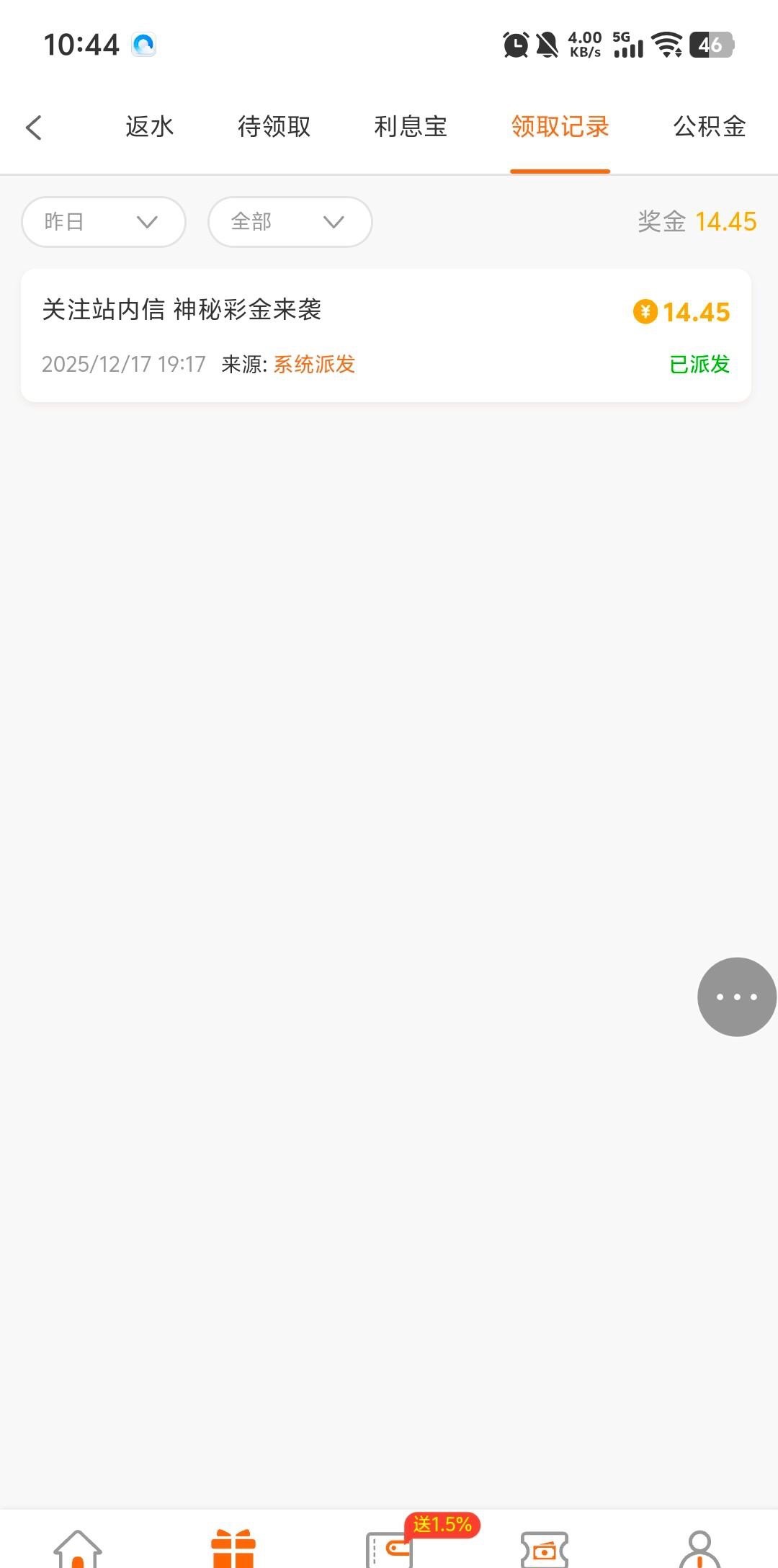 我看记录是昨天派发,今天才上号领取的,以前充过一百几十。链接445.com