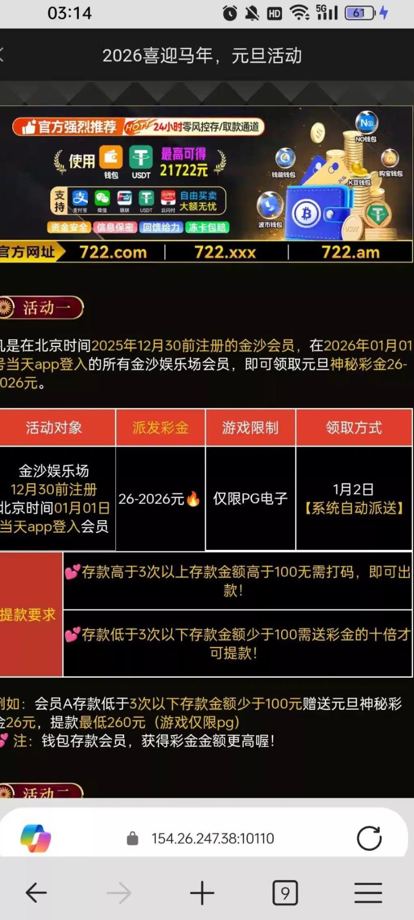 没号的赶紧去注册,722.com,元旦登录领取