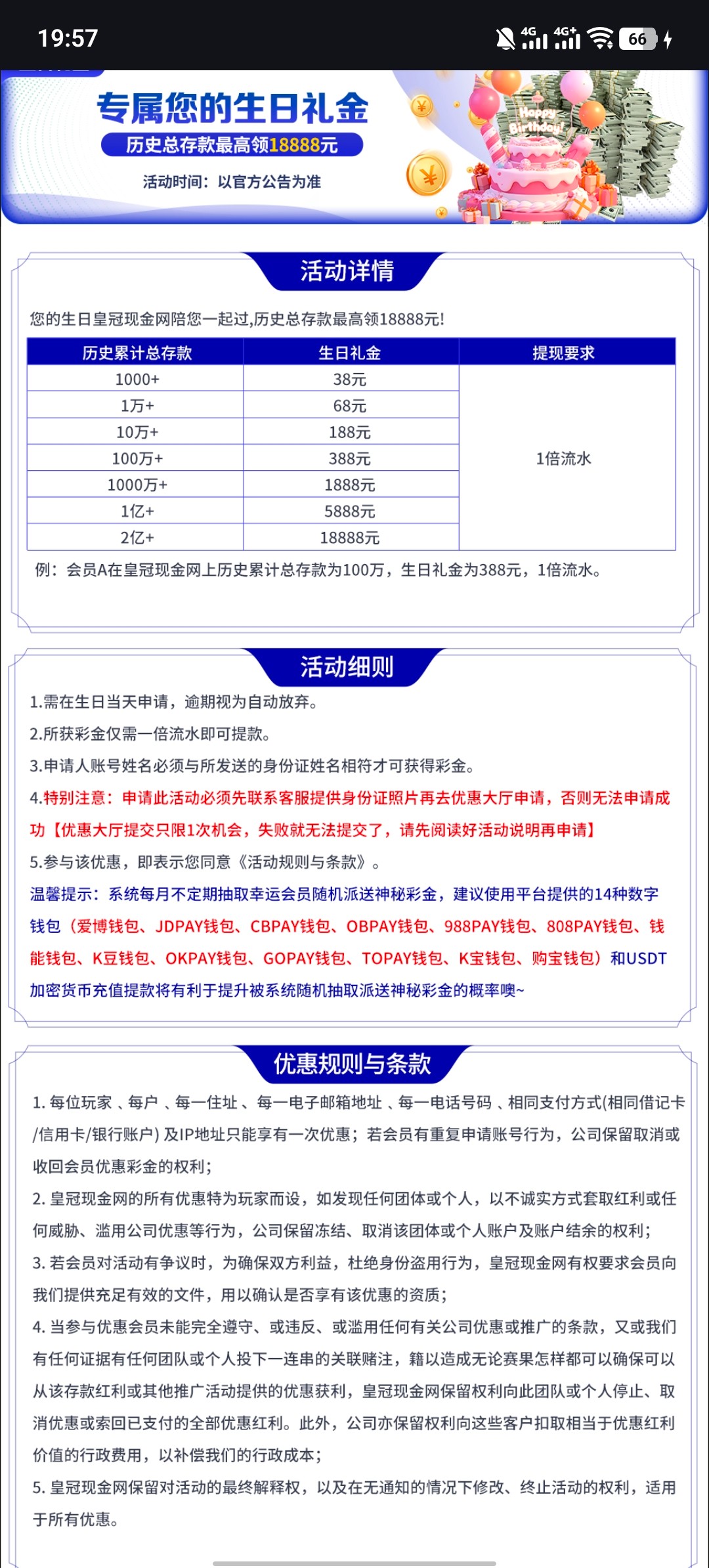 历史存款满1000+生日当天即可申请彩金