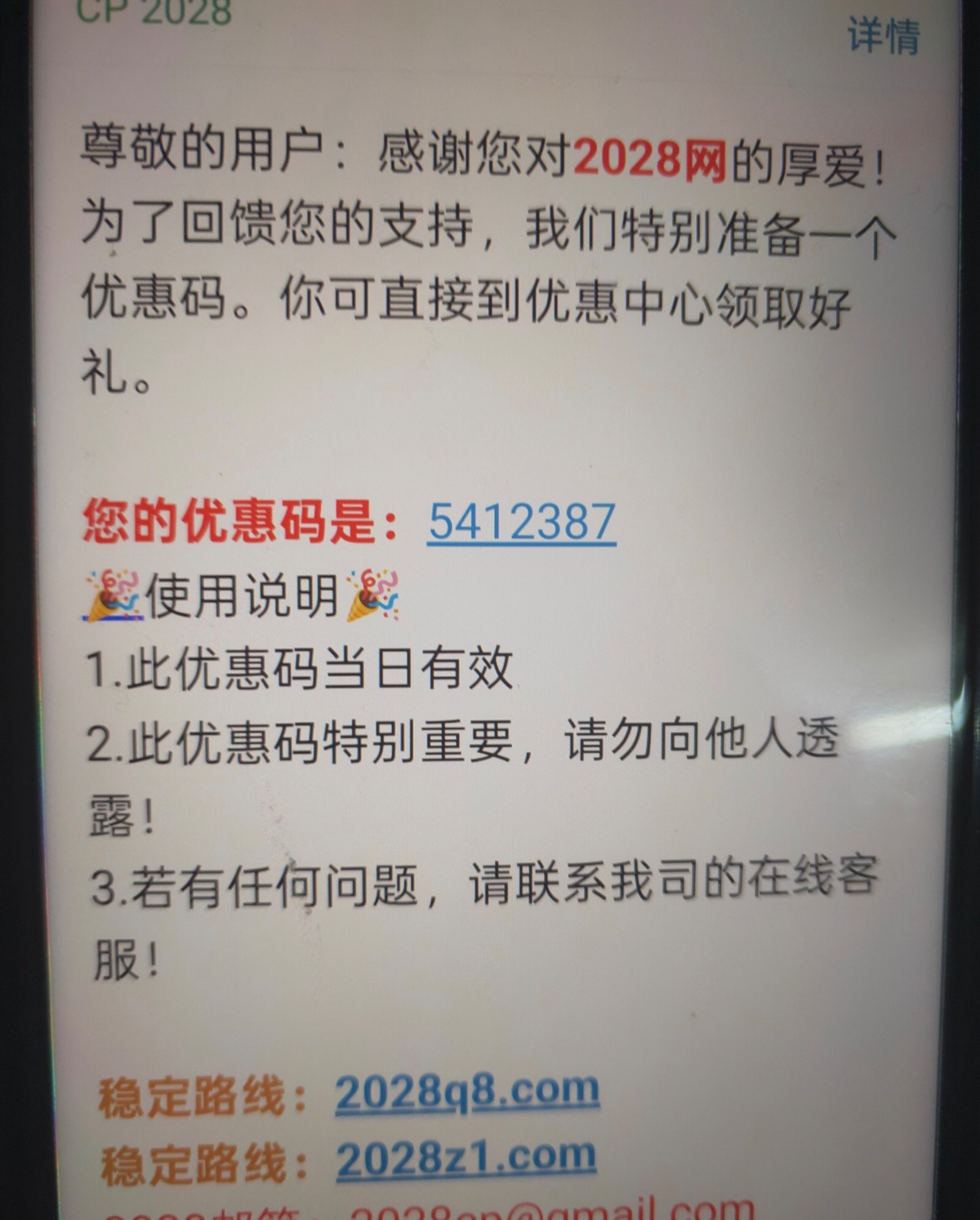2028邮箱彩金,优惠码通用的,绑定邮箱的试试,链接 2028aa.com