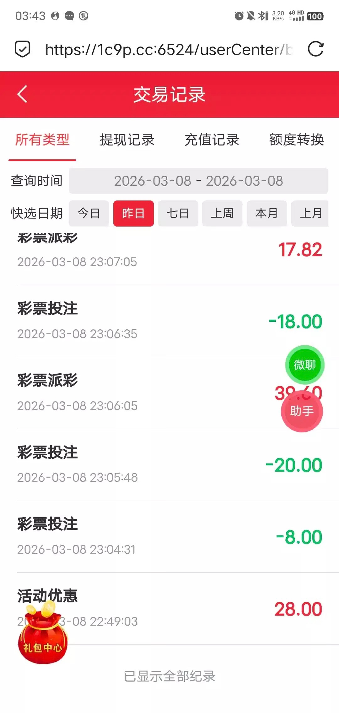 这台子名字就叫彩票 邮箱特邀送28不知道能不能碰瓷 可以去试试 28彩金一倍水最低288出款 我没打出来 碰瓷白嫖就行别充值 特邀网址 1c9p.cc
